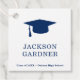Classic graduation de préférence tag avec un design simple et minimaliste avec un casquette grand avec le nom du diplômé en bleu marine sur un arrière - plan blanc. Ci-dessous est l'année de classe et le nom de l'école. Le côté arrière a votre message de remerciement personnel. Un design traditionnel avec une touche masculine, parfait pour un jeune diplômé. Ces étiquettes de faveur sont une excellente façon d'ajouter une touche personnelle à vos faveurs de fête.