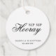 Élégantes étiquettes de faveur de shower de mariage avec typographie avec un design simple avec les mots, "Sip Sip Hooray" en calligraphie noire et polices serif et votre nom et message ci-dessous, sur un fond blanc. Les polices et les couleurs de fond peuvent être modifiées à toutes les couleurs que vous souhaitez. Ces étiquettes élégantes et raffinées sont idéales pour une mariée chic et ajoutent une touche personnelle à vos faveurs.