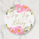 Étiquettes personnalisées Sip Sip Hooray pour vos cadeaux et faveurs. Ce modèle floral rose présente des fleurs épanouies roses, des boutons dorés et une calligraphie élégante. Le modèle est prêt à être personnalisé avec votre message de remerciement, vos noms et la date de l'événement. Parfait pour les mariages, les douches de mariée, les douches de couple, les fiançailles, etc.