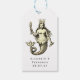 Favoriser les étiquettes avec une sirène vintage dorée et un motif de treillis de perles bleues et dorées au verso'