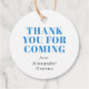 Un merci d'être venu tag de faveur idéal pour une fête d'anniversaire avec un texte facile à modifier et un charmant singe illustré dans un casquette de fête sur un arrière - plan vert.