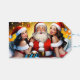 Une scène de vacances dynamique et ludique avec le Père Noël entouré de deux femmes souriantes en tenue festive. Les deux femmes portent des chapeaux de Père Noël et des tenues rouges parées de fourrure blanche, ajoutant une touche flirtante et joyeuse à la célébration. Père Noël, dans son costume rouge classique, semble joyeux tandis qu'il s'assoit entre eux, tenant un cadeau. L'arrière - plan est rempli de lampes à cordes brillantes, d'ornements étincelants et d'une chaude lueur dorée, qui rehaussent l'atmosphère festive. Des cadeaux enveloppés de cordes colorées sont éparpillés dans l'esprit de Noël et de fête.