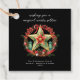 Joyeux solstice ! Célébrez la plus longue nuit de l'année avec cette belle carte Pagan Yule Winter Solstice de Noël. Cette couronne d'étoile pentagramme d'aquarelle est remplie de champignons, de glands, de pointes de pilier de fluorite vert, de baies rouges, de cloches, de plumes et de verdure, surmontée d'un arc rouge. Texte prêt à customiser avec votre nom et votre adresse.