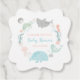 Sous le thème de la mer, la marque de baby shower privilégiée comprend une baleine, requin tigre, gelée, tortue de mer et hippocampe, le tout nageant en cercle avec herbe de mer et coquillages.