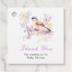 Pretty baby shower favor tag with an adorable bird and purple and yellow flowers. Perfect for a spring or summer baby shower. The words can be changed to suit your own details or requirements