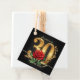 Add a touch of timeless glamour to your milestone celebration with this sophisticated favor tag. The layout features a dramatic black background illuminated by a large, sparkling faux gold number "30" and accented with a romantic, realistic red rose. Elegant script typography ties the look together, creating a luxurious aesthetic.