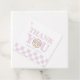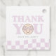 Célébrez vos filles super dès le premier anniversaire de fête avec notre lavande ludique à damiers 'ONE RAD CHICK' fête d'anniversaire tag faveur. Ce design présente un visage heureux facile à aimer avec des lunettes de signe de paix et des motifs ondulés de lavande à damiers.
