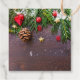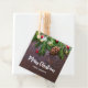 Préférez les étiquettes avec une photo rustique d'une table en bois marron avec des pinecones, des aiguilles de pin, de la neige et des ornements de Noël. Festif et adorable.