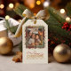 Wrap up your holiday wishes in warmth and tradition with this cozy Christmas gift tag featuring a customizable photo frame surrounded by classic red and green plaid. The scalloped edges and delicate snowflake details give it a handcrafted feel, while the modern typography and "Merry Christmas" message add a festive touch. Personalize with your family name and photo for a heartfelt greeting that’s both nostalgic and stylish — perfect for mailing holiday joy to friends and loved ones. Search ID1141 to see other products in the Christmas design set.