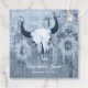 Ce beau tourtereau rustique bleu western mariage boho boho de couleur blanche merci les étiquettes de faveur sont un must sur votre grand jour. Crâne de taureau rodéo cowboy avec cornes texture florale pays, grange bois vintage bohème maison de cowgirl design. Copyright de l'image Marg Seregelyi Photography.