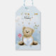 Mignonne Ours Teddy tenant un coeur sur un nuage bleu avec des étoiles. Texte personnalisable devant et derrière. Choix de la chaîne.