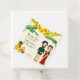 Telugu Tamil South Indian mariage personnalisées des étiquettes cadeaux de faveur avec feuilles de banane, kalash et lampes et mignon couple de mariées en vêtements traditionnels.
