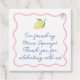 Ce modèle moderne de favori présente une bordure "gribouillée" dessinée à la main à la mode avec un citron peint à l'aquarelle sur fond blanc pour une sensation estivale fraîche et charmante. Montré ici pour une réception de mariage, mais bien sûr, le texte pourrait être personnalisé pour n'importe quel événement.