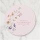 Montrez votre gratitude avec notre étiquette de faveur ronde pour un thé de mariage aux fleurs sauvages rose blush avec un message de remerciement au verso. Ornées de superbes fleurs aquarelles peintes à la main en pourpre profond, bleu poussiéreux et rose blush avec de la verdure sauge, ces étiquettes complètent magnifiquement les tasses et soucoupes à fleurs crème et or sur un fond rose blush, avec un adorable papillon rose ajoutant du charme. Chaque étiquette est conçue pour créer une atmosphère cohérente et enchanteresse, pour que vos invités se sentent appréciés et chéris.