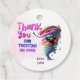 Ajoutez une touche frappante à vos faveurs de fête avec cette étonnante étiquette de remerciement sur le thème de la tornade ! Parfait pour les célébrations sur le thème de la météo ou les fêtes d'anniversaire tourbillonnantes comme un "Four-Nado", ce design capte l'énergie dynamique d'une tempête d'une manière créative et ludique. Doté d'une illustration de tornade magnifiquement conçue, de couleurs vives et d'une typographie audacieuse, ce tag est la meilleure façon de remercier vos invités d'avoir participé à votre journée spéciale. Qu’il s’agisse de sacs, de cadeaux ou de gâteries, il ne manquera pas de laisser une impression durable. Faites de votre fête un moment inoubliable avec ce design unique qui apporte un tourbillon de plaisir et d'appréciation à votre événement!