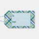 Cette étiquette cadeau comporte un amusant visage de dinosaure triceratops bleu et coordonnant le motif plaid parfait pour les enfants, en particulier un petit garçon.