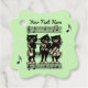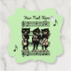 Cet ensemble de balises de faveur pour toute occasion est vert clair avec trois musiciens de chat noir jouant leurs instruments de musique tout en se tenant sur la partition avec des notes de musique noire. Customisez votre texte pour votre occasion avec le modèle à l'avant et à l'arrière.