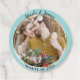 Étiquettes Cadeau Turquoise Blue Minimal Mariage photo ronde tendanc
