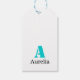 Étiquettes-cadeau Turquoise Élégant Initial Noir Nom | Moderne