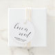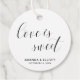 Typographie marnographique étiquettes de faveur avec le message, "L'amour est doux" en calligraphie noire avec un coeur en pointillant le "i" et vos noms et date ci-dessous, sur un arrière - plan blanc. L'arrière est un noir solide. Les couleurs arrière - plans peuvent être changées en n'importe quelle couleur. La disposition simple et minimaliste et beaucoup d'espace ouvert donnent à ce design une atmosphère moderne et la calligraphie lettrée et le coeur lui donnent une touche romantique. Ces étiquettes élégantes ajoutent une touche personnelle à vos préférences.