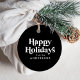 Tags de vacances modernes avec "Happy Holidays" en lettrage de style rétro blanc avec un arrière - plan noir. Personnalisez l'avant des étiquettes noires et blanches des faveurs avec votre nom ou texte personnalisé. Le verso de la balise affiche votre message personnalisé. Conçu pour coordonner avec notre collection de vacances Retro Typography.
