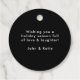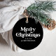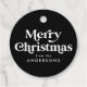 Tags de Noël modernes avec "Joyeux Noël" en lettrage rétro blanc avec un arrière - plan noir. Personnalisez l'avant des étiquettes noires et blanches des faveurs avec votre nom ou texte personnalisé. Le verso de la balise affiche votre message personnalisé. Conçu pour coordonner avec notre collection Retro Typography Christmas.