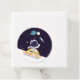 Merci privilégier les étiquettes avec un arrière - plan bleu foncé avec des étoiles jaunes éparpillées autour. Couché sur le dessus est l'illustration d'un astronaute vêtu d'une combinaison blanche flottant au-dessus de la lune. Au loin se trouve une planète avec des anneaux et un vaisseau-fusée qui s'envole dans le ciel à la recherche de nouveaux mondes à explorer.