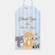 Balise cadeau Merci pour les cadeaux de remerciement aux baby showers à thème Woodland. Un joli petit renard aquarelle, raton laveur et spermophile bleu rayé étiquette cadeau.
