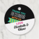 Un design amusant avec des rayures vertes et turquoises et des textes aux couleurs vives. Cette étiquette cadeau est parfaite pour les sacs de bienvenue ou les faveurs mariages à thème des années 80. Personnalisez avec vos noms.