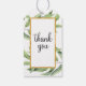 Ces étiquettes de cadeaux Mariages de style élégant et moderne Cheers to Love sont dotées de deux verres de champagne pétillants dans un toast à l'amour. Personnalisez ce mariage de style moderne merci tag cadeau avec vos noms et la date de votre événement. Sur le dos de l'étiquette cadeau, il y a un joli cadre en or et en feuilles botaniques avec "merci" écrit en écriture de script tendance.