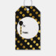 Ce design est composé de faux or et de pois noirs avec un mignon visage de licorne dans des couleurs assorties. Facile à personnaliser avec votre texte. Idéal pour les anniversaires, les cadeaux de Merci, le Baby shower, et plus encore. Coordonner avec nos produits et accessoires en papier et accessoires en papier Unicorne Gold et Black Magical.