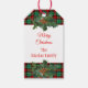 Un tag cadeau personnalisé lisant avec texte de script modifiable pour votre message, et police rétro pour votre nom, et sprigs de saint sur un motif plaid rouge et vert vacances.