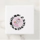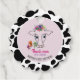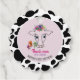 Mignon, drôle rose, noir et blanc vache sacrée avec couronne florale étiquette de remerciement pour 1er anniversaire. Merci moo!