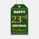 Étiquettes-cadeau Vert, Faux Gold 23ème anniversaire + Nom personnal
