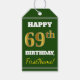 Étiquettes-cadeau Vert, Faux Gold 69e anniversaire + Nom personnalis