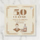 Celebrate turning fifty in true classic style with this vintage-themed birthday thank you favor tag. Set on a textured light-brown backdrop, the design features refined vintage corner borders and a striking layout with a distinguished gentleman graphic on one side and a whiskey bottle with glass on the other. The bold “50 & classic” headline in vintage lettering anchors the design, with editable party details displayed in a simple, modern sans serif font for effortless personalization. The full vintage-brown color palette ties it all together for a refined, masculine look.