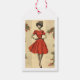 Add a touch of timeless Christmas charm to your gifts with this vintage-inspired holiday gift tag featuring a graceful lady in a classic red dress. Surrounded by festive holly and berry branches on an antique book-page background, this design blends retro fashion with nostalgic holiday elegance. Perfect for Christmas presents, handcrafted gifts, boutique packaging, or anyone who loves vintage aesthetics. A beautiful finishing detail that makes every package feel extra special.