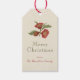 Simple et élégant Vintage floral personnalisable étiquette cadeau de Noël. Design botanique vintage du vieux monde avec script rouge bordeaux. Cette mignonne étiquette cadeau de Noël présente de belles fleurs botaniques vintages sur un arrière - plan en papier ancien. Personnalisez le message et le nom.