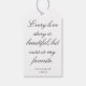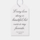 "Every love story is beautiful, but ours is my favorite." Beautiful tags with thoughtfully chosen quotes to capture a soon-to-be married couple’s love and journey together for your wedding or bridal shower centerpieces.