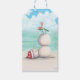 Étiquettes-cadeau Yoga tropical Snowman sur la plage
