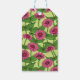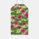 Étiquettes-cadeau Zinnias rose sur vert clair