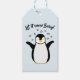 Des étiquettes cadeaux avec un bébé pingouin mignon et de petites étoiles représentant des flocons de neige. Le texte dit "Laisse tomber Baby !". La conception est personnalisable et vous pouvez personnaliser le texte.