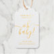 Papier doré classique et luxueux cadeau baby shower personnalisé ou étiquette de faveur. Avec son slogan "oh mon bébé" mignon et sa typographie élégante. Simple et chic. Personnaliser avec nom, message court et date.