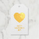 Étiquette cadeau élégante personnalisée Joyeuse Saint-Valentin en feuille métallisée en forme de cœur disponible.