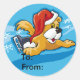 Des étiquettes cadeaux de Noël mignonnes avec un chien patinage sur glace.