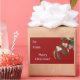 Photographie d'un bourgeon de mistletoe avec des baies sur un arrière - plan de canneberge. Tout le texte personnalisable.