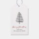 Des étiquettes cadeaux de Noël simples et modernes présentent une aquarelle Scandi avec Joyeux Noël en écriture manuscrite rouge. Personnalisez avec votre nom de famille.