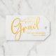 Ajoutez une touche de sophistication à vos faveurs de remise de diplômes avec cette étiquette cadeau de fête de remise de diplômes, avec un vrai script de feuille d'or et un modèle diplômé classique. Parfait pour les grands, ce design minimaliste simple présente une typographie calligraphique élégante et un casquette casquette élégant pour un look intemporel. L'élégance élégante et l'esthétique minimaliste simpliste en font une touche finale idéale pour célébrer votre classe de jalon d'une manière raffinée et mémorable.