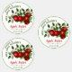Pommes rouges entières accrochées au milieu de feuilles verts.