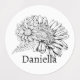 Étiquettes Chrysanthemum Black Line Drawing with Your Name
